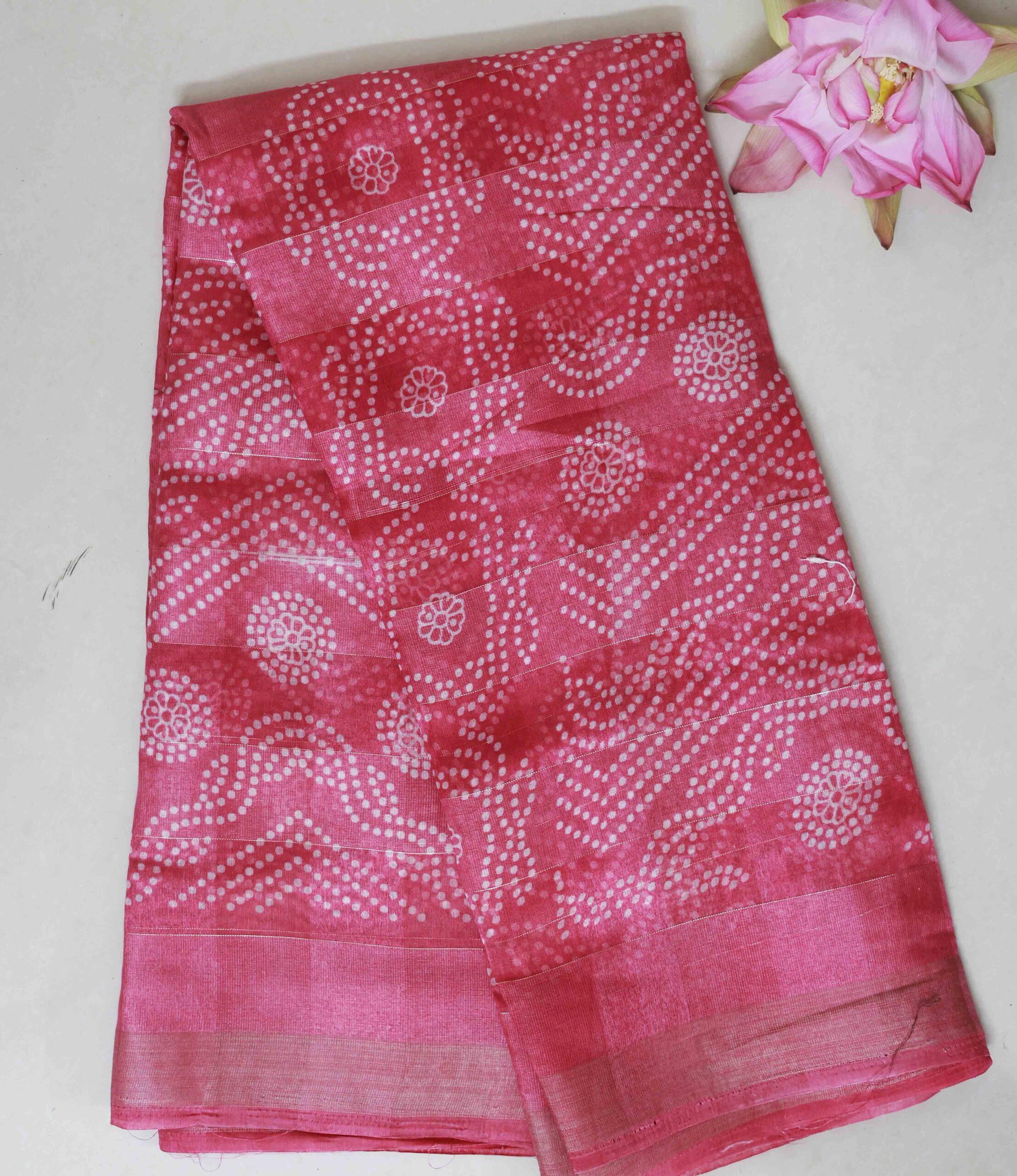 Stay cool and stylish with this deep rose pink bandhani printed cotton saree . Lightweight, breathable, and adorned with timeless prints—perfect for everyday elegance or casual festive wear.