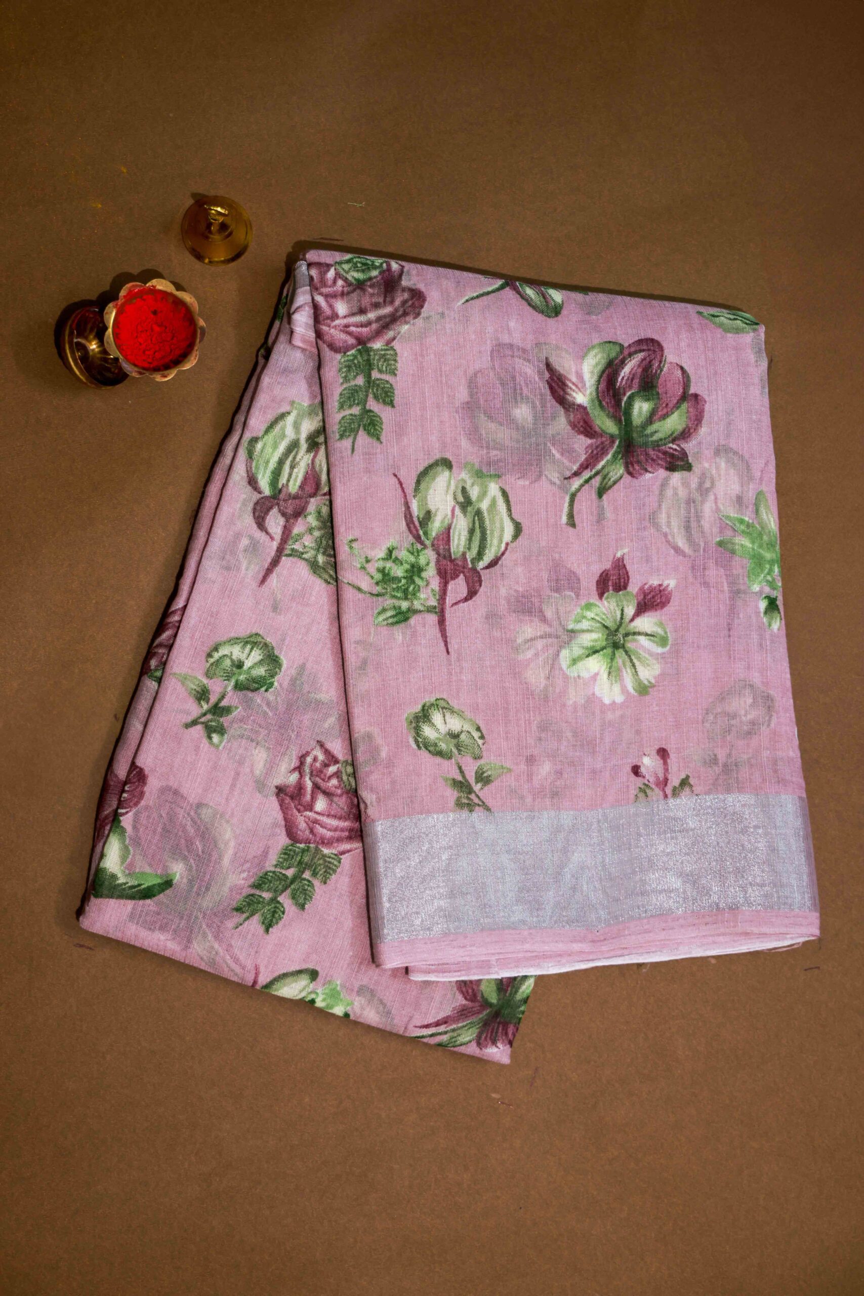 Grace your day with subtle charm in this mauve pink cotton saree, styled with soft digital floral prints. Lightweight and easy to wear for any occasion.